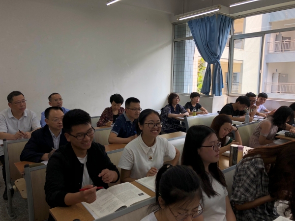 课后,听课教师杨忠谦、杨钊、刘学明、胡明清等就李帅博士的课程进行了研讨。