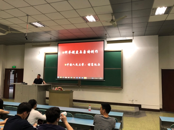 5月8日晚,中国人民大学国学院副院长、博士生导师诸葛忆兵教授应邀莅临我校知津楼红河一阶,为m88.com300多名师生举办了题为“唐代科举制度与唐诗创作”的学术讲座。院长助理王长武以及黄贤忠博士、肖丽容博士到场聆听。
