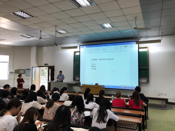 6月9日下午,西南大学文学院硕导魏小娜教授应邀来m88.com举办了题为“阅读策略:理论探索与实践运用”的学术讲座。院长李天福丶院长助理王长武、语文教研室主任李东平、中文系部分老师,以及160多名汉文师范专业学生到会聆听。