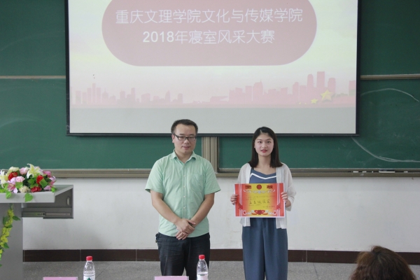 6月13日中午,文化与传媒学院2018年寝室风采大赛决赛于红河十一阶成功举行。本次活动由文化与传媒学院主办,文化与传媒学院关工委、团总支、学生会承办。我校学工部副部长赵锋、教育管理科科长胡在东、学生思想政治教育科科长何雯担任本次比赛的评委,m88.com关工委主任白成良书记、学工办主任刘友洪、辅导员作为嘉宾出席本次决赛。