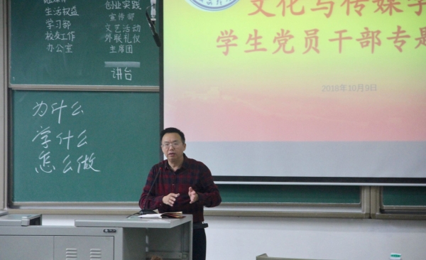 10月9日,m88.com2018年秋季学生党员及学生干部专题培训大会于知津楼三阶顺利举行,学院党总支书记白成良主讲,学生党员、学生干部及入党积极分子参与培训。会议由学工办主任刘友洪主持。