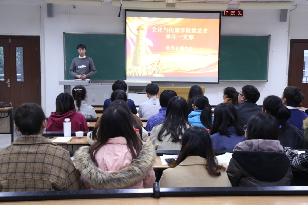 2018年11月14日下午4:30,文化与传媒学院党总支学生一支部2018年下半年党员发展大会在知津楼D201顺利召开,文化与传媒学院党总支学生一支部全体党员、预备党员、发展对象和发展对象的入党介绍人参加了此次会议,本次会议由支部书记张雪主持。
