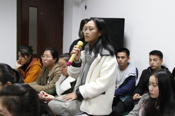 会上,李天福以幽默风趣的话语同学们表达了真挚的祝愿,并对18级新生目前积极的学习面貌、热情的工作状态表示了肯定,让同学们感受到了学院的关怀。李天福叮嘱同学们多去图书馆,在书籍中提升内涵、寻求发展、提升价值、确立目标,引导同学们明白大学学习的意义与乐趣。白成良就创业与就业问题作出了详细的回答,鼓励大家积极创新、勇于创业,希望同学们在创新创业中提升自身综合素养。李芹燕则在同学们如何选择社团、如何平衡学习与工作上作出了回复,教导同学们有效利用时间丰富自己,为将来的职业生涯奠定坚实基础。余建荣为大家解答了研与英语四级的问题师言如春风化雨,温言解惑。期间,师生在学习、就业和生活等方面线上提问和线下交流的形式进行互动,共度了一段轻松温馨的时光
