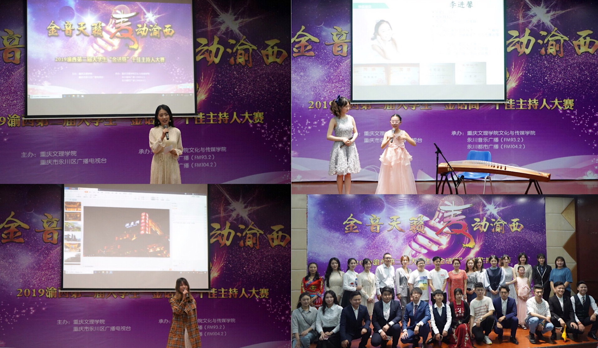 洋溢青春,秀出精彩。4月13日下午,由永川区广播电视台和我校主办,永川音乐广播、永川都市广播及m88.com承办的渝西第二届大学生“金话筒”十佳主持人大赛复赛在博文馆101顺利举行。永川广播电视台都市广播节目总监刘兵、重庆市十佳播音员林燕、永川广播电视台节目主持人肖红担任评委嘉宾,校团委老师陈柏骏,教育学院教师叶静等出席比赛。