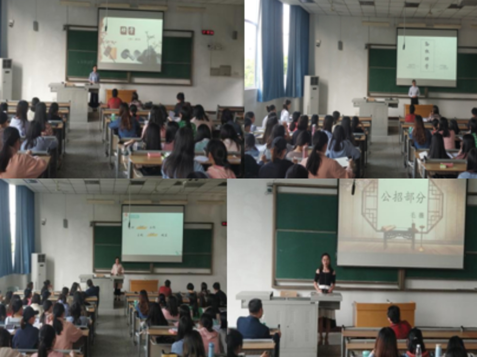 在2015级汉文师范实习汇报结束后,又马上开始进行2016级汉语言文学师范专业领航课试讲,2016级学生代表李柚君、余文华和解红英同学从说课和讲课两部分,依次展示他们的试讲。
