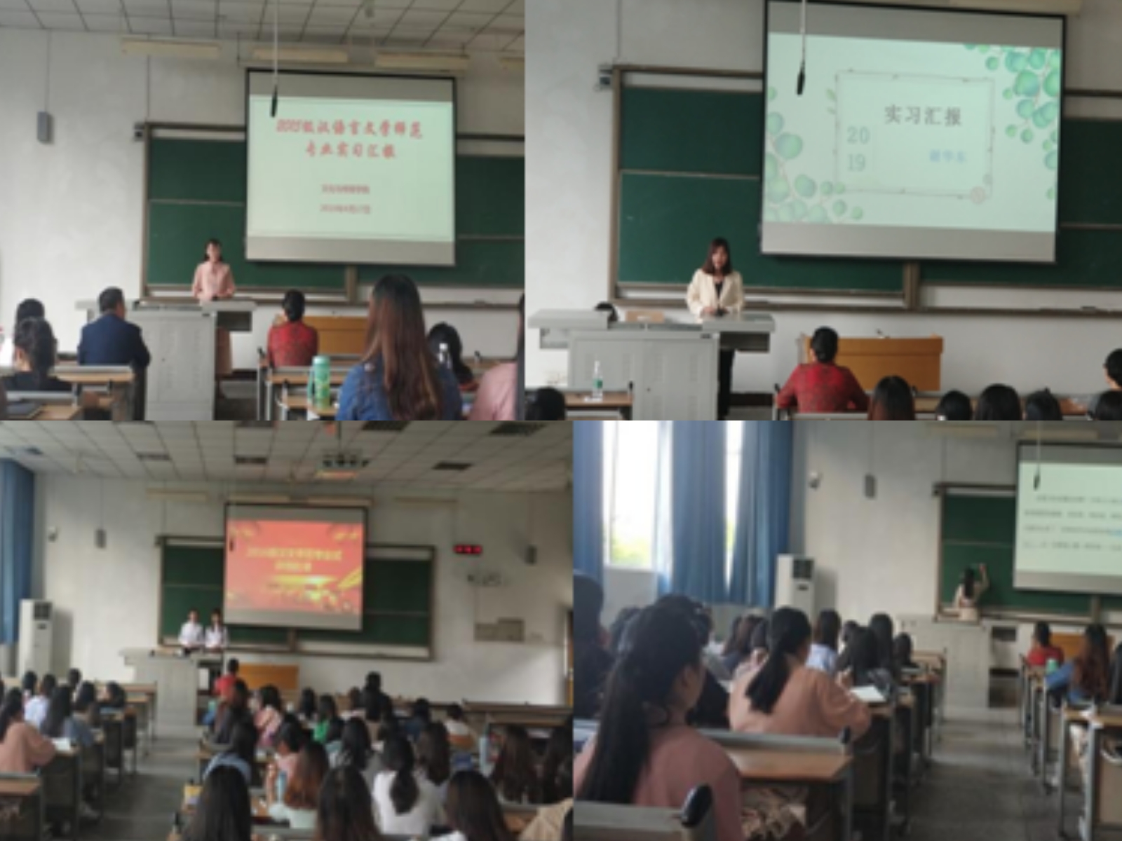 在专业实习汇报会上,首先,由2015级学生代表严鑫、谢华东等人分享了各自的实习经历,并依次就顶岗实习、教师点招以及教师公招考试等方面向2016级全体学生提出了个性化的建议。其次,黄贤忠老师对与会师生的积极参与表示感谢,强调了试讲工作的重要性,并向2016级汉文师范的学生提出了具体的要求。