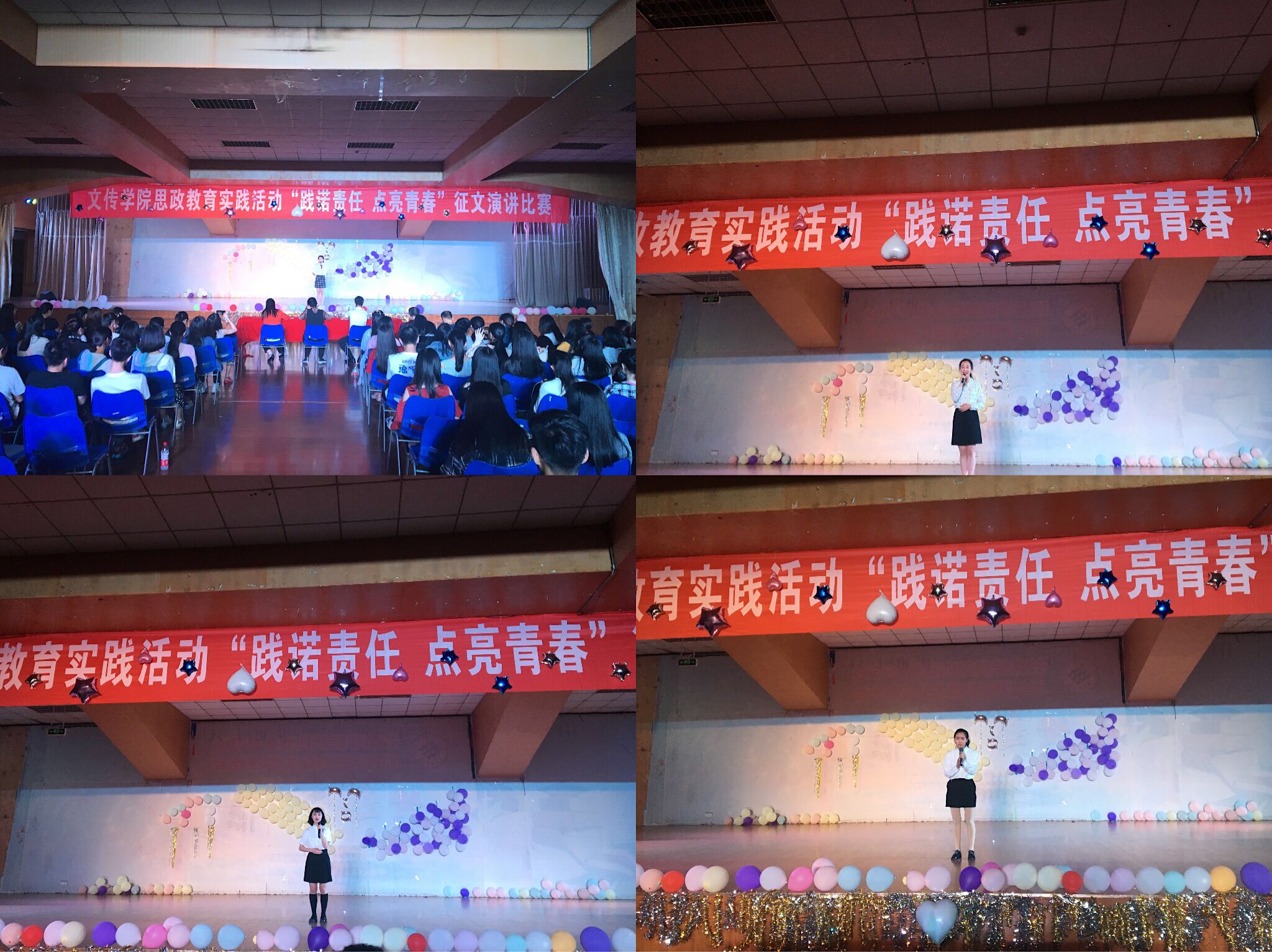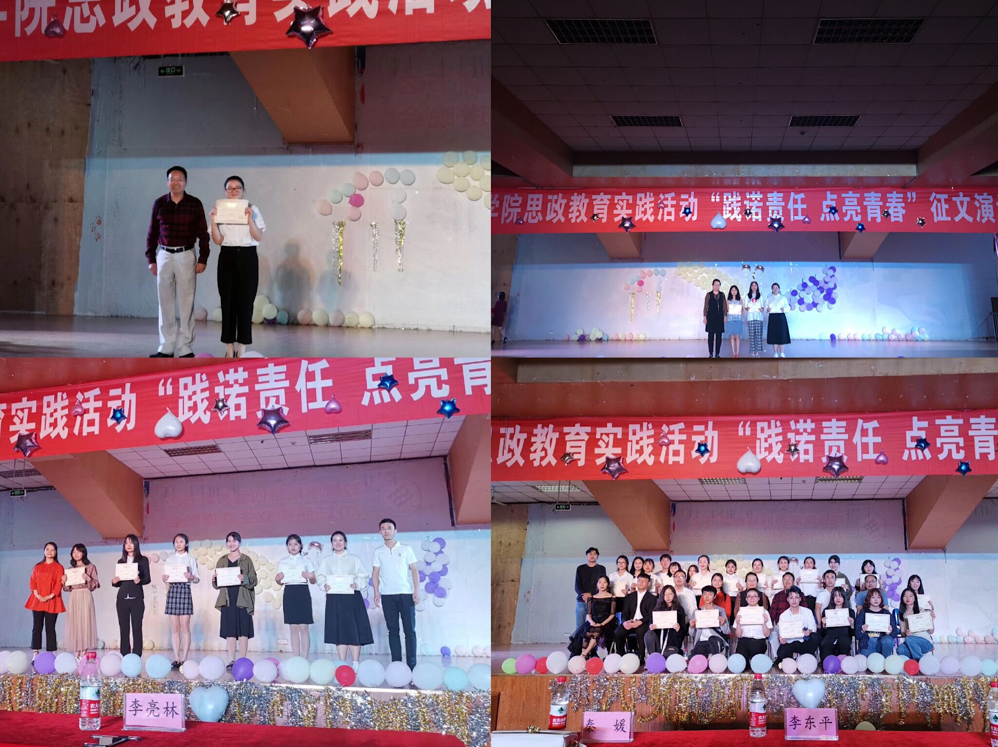 为搭建学生成长成才的平台,增强学生责任感,弘扬责任担当精神,4月21日晚,m88.com于学生活动中心三楼开展以“践诺责任,点亮青春”为主题的周末教育实践课,课程以征文演讲比赛的形式举行。评委由m88.com教法课程组组长李东平老师、秦媛老师、学工部思政科李亮林老师担任。学院党总支书记白成良,各级辅导员及m88.com18级全体同学参加了本次活动。