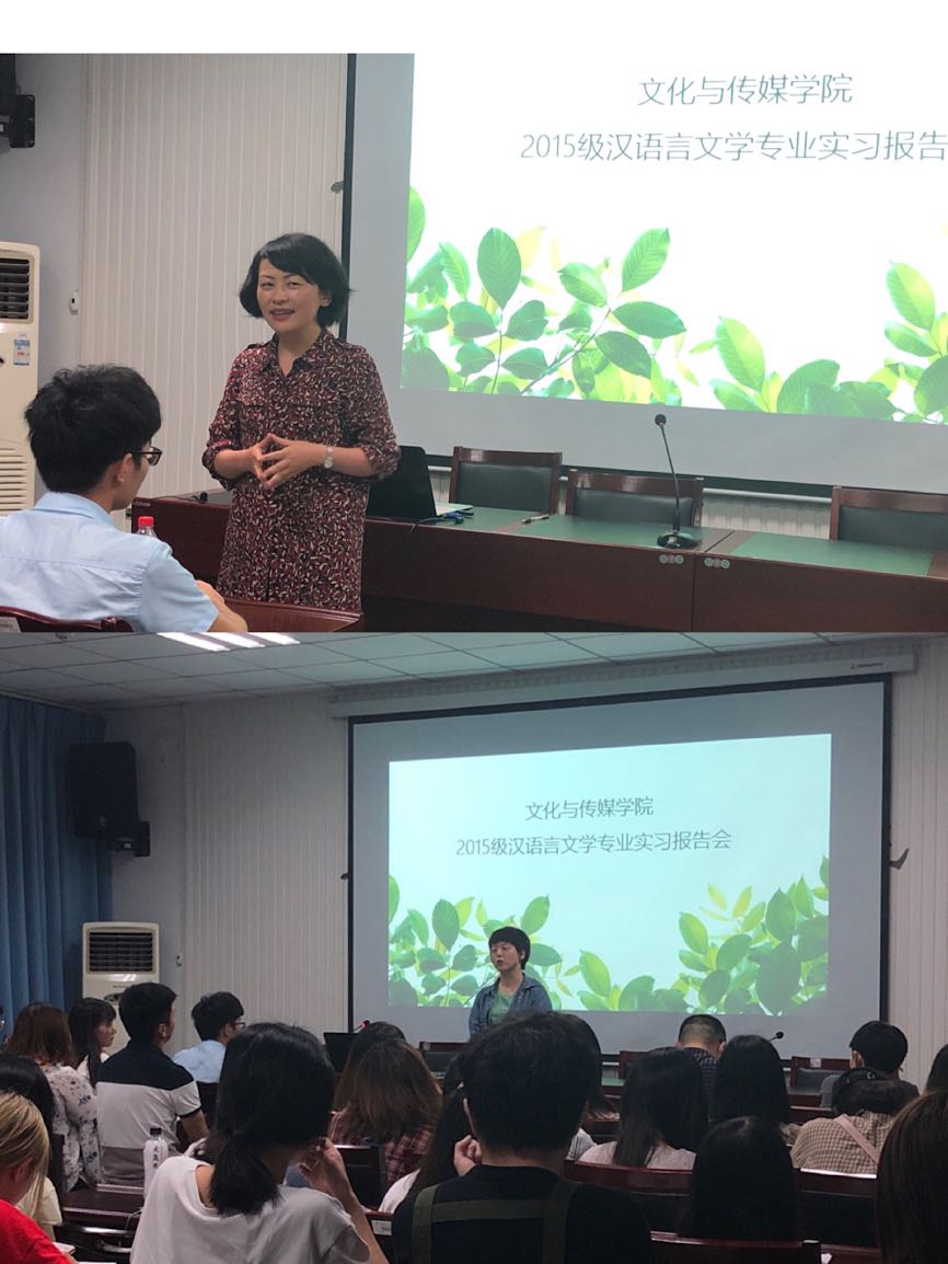 最后,周杰老师做总结发言,她充分肯定了2015级汉语言文学专业学生的实习成果,对专业老师尽心尽力教书育人表示感谢并从自身经历出发分享工作经验,希望2016级汉语言文学专业的同学们能够以良好的心态面对即将到来的实习,不断提升专业技能,做好思想准备,正视困难,不断积累经验。