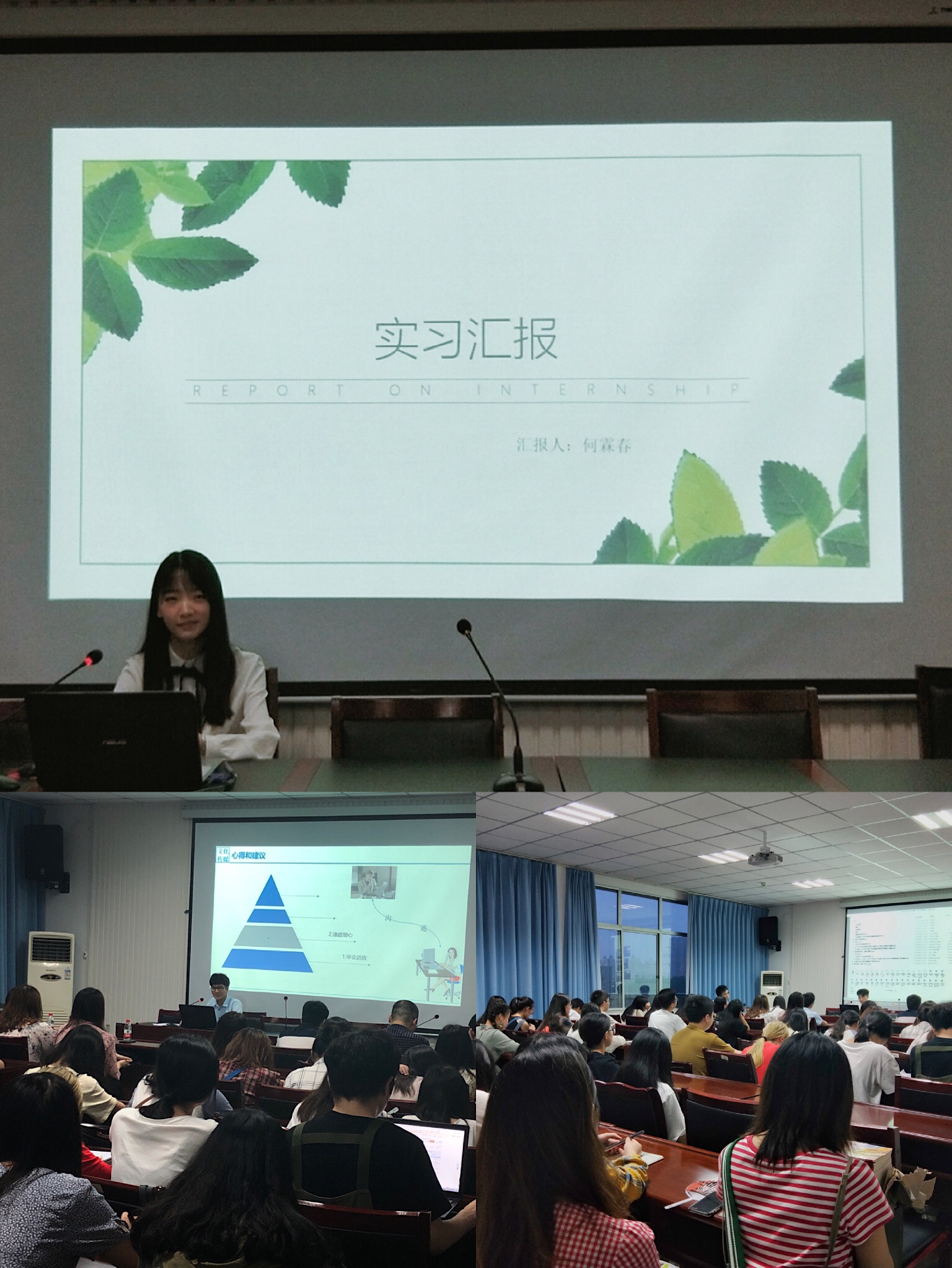 张亚从实习公司的基本情况及工作内容出发,分享他的心得,认为求职时应擦亮眼睛,弄清岗位信息,签订合同需提高警惕;工作讲求方法,胆大心细,在实习过程中要向前辈取经并适当排解内心压力。刘国防从实习计划、实习内容、实习建议、实习有感四个方面进行汇报,提出实习前应明确实习目的,确定自己的计划,工作中重视总结、备份整理工作内容,希望学弟学妹们不要怕犯错。杨俊谈到他在永川供电公司党建工作部的新闻宣传管理工作,他认为,端正态度、提升专业技能、学会为人处世有利于在未来工作中发展。