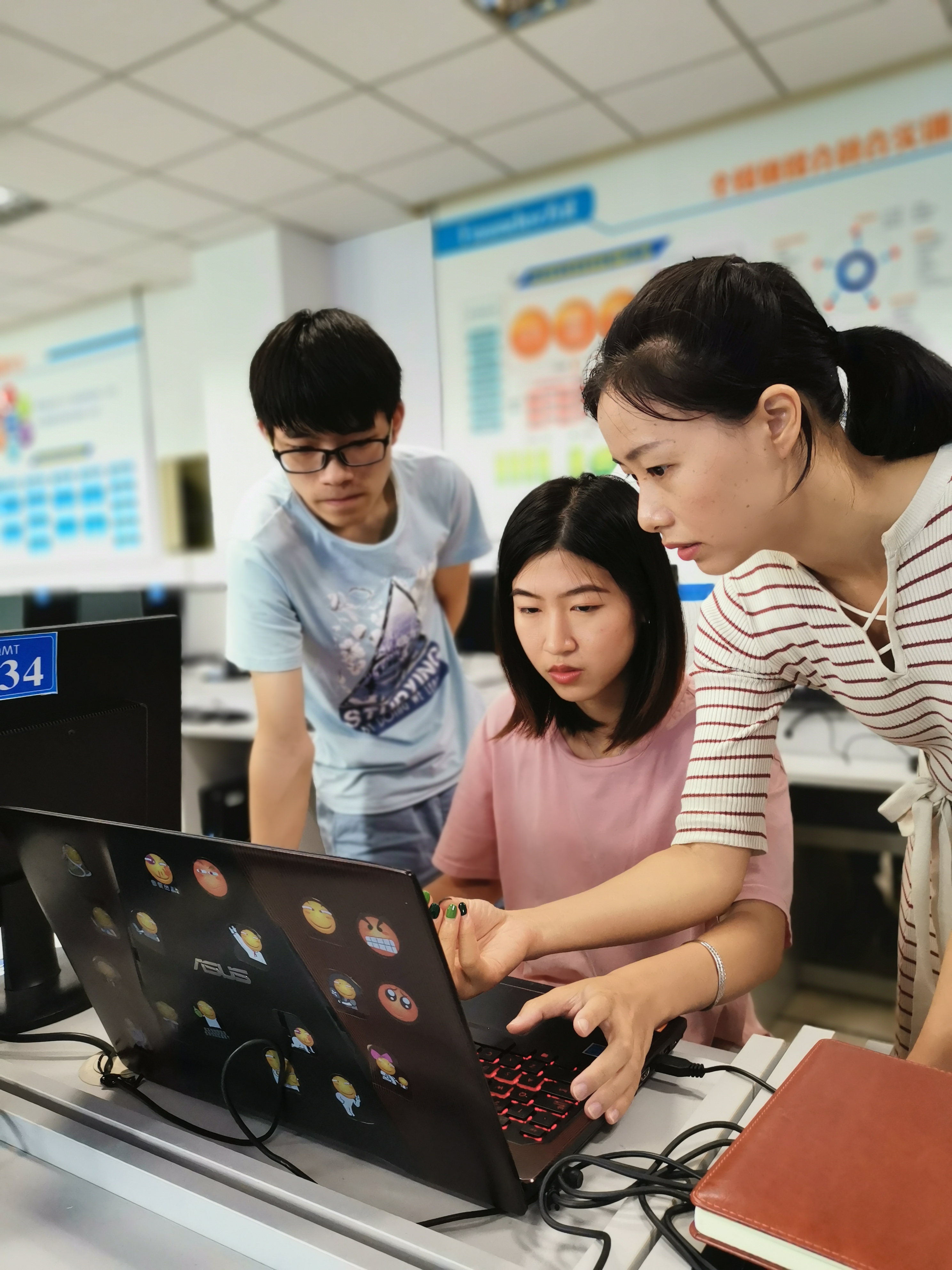 两位老师先对比赛规则和选题进行分析,对新媒体内容的创意设计、元素运用、版式风格、文案写作以及方正软件的操作等多个方面的内容进行讲解,接着采用小组分工的合作形式,选定参赛主题展开训练。经过五天的专项训练和作品打磨,所有小组均顺利完成考核.