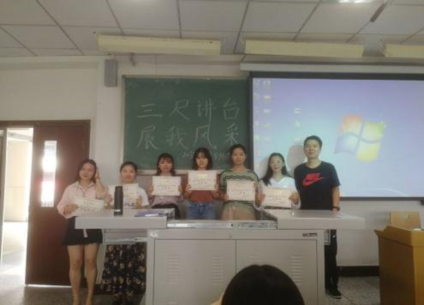 一支粉笔书写激扬青春,三尺讲台展学子风采。以赛促训的模拟比赛经过一番激烈的角逐,最终田清同学以89.2分的成绩获得一等奖,朱申艳同学和刘畅浛同学分别以89.1分、88.8分的成绩获得二等奖,陈靖宇同学和蒋晶晶同学分别以88.2分、87.3分的成绩获得三等奖。