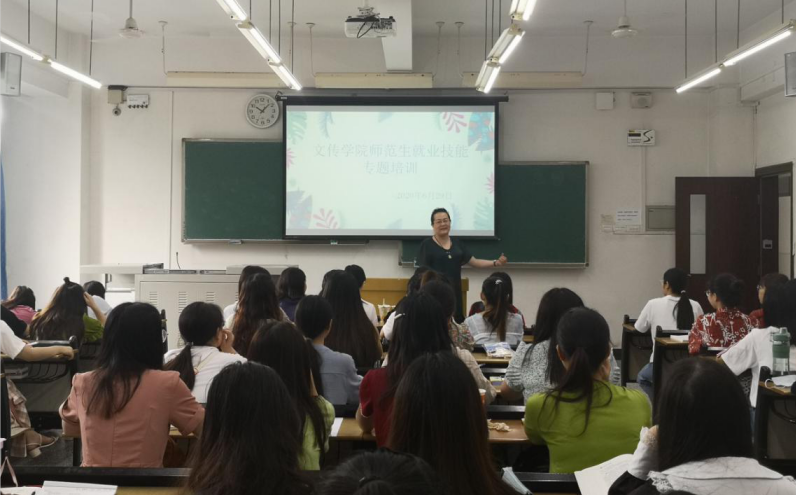 为提高师范生就业择业能力,6月29日上午,m88.com在知津楼B207开展了师范生就业技能专题培训。活动邀请到中文系教法教研室主任李东平老师、2019级学生辅导员张雪老师做培训主讲,2017级汉语言文学(师范)专业学生80余人参加了培训活动。