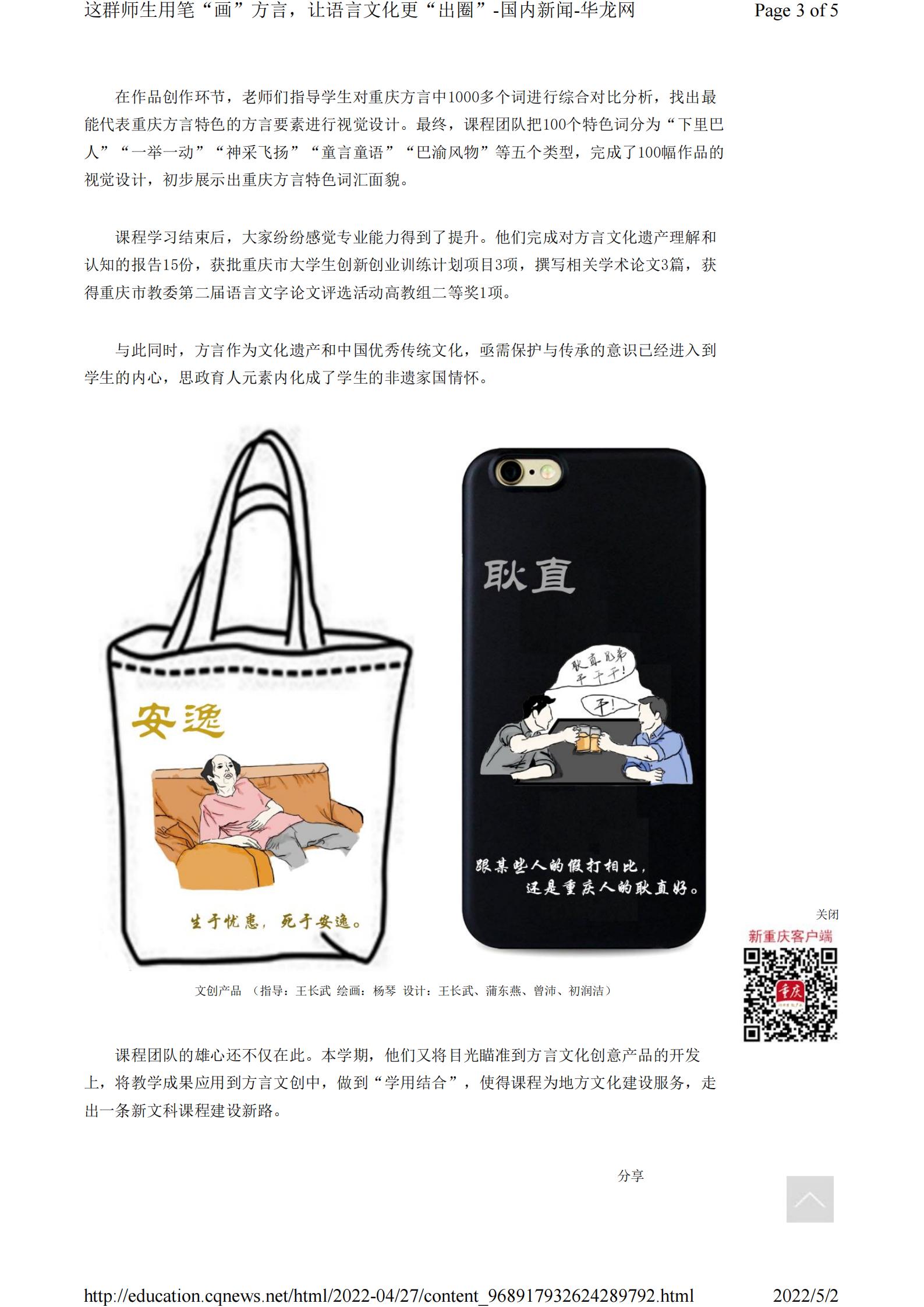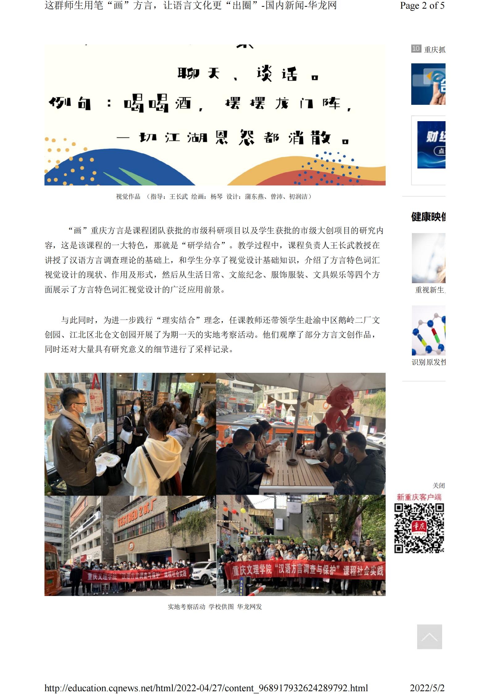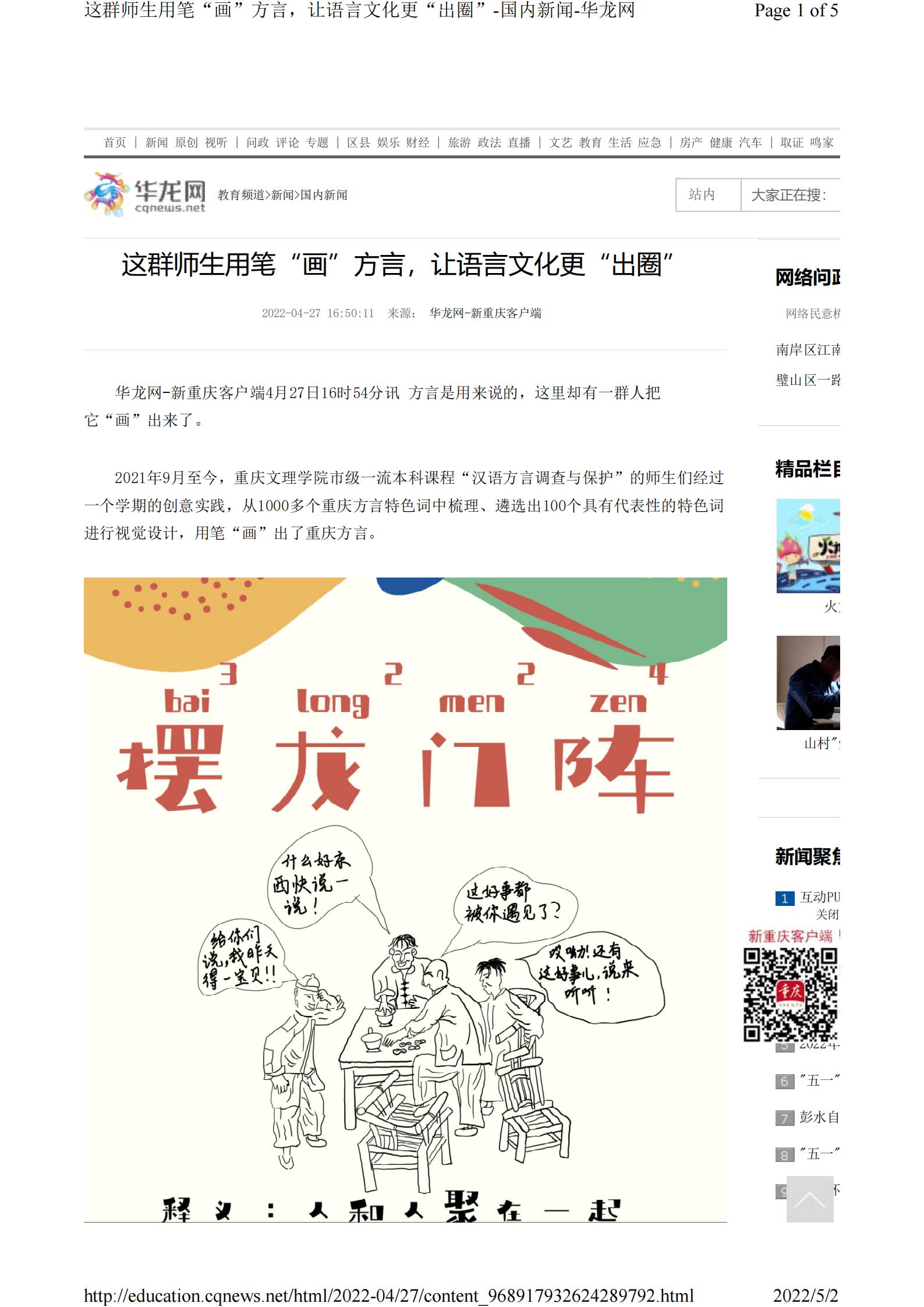 华龙网-新重庆客户端4月27日以《这群师生用笔“画”方言,让语言文化更“出圈”》为题报道m88.com市级一流课程师生“画”方言的事迹。以下为报道原文: